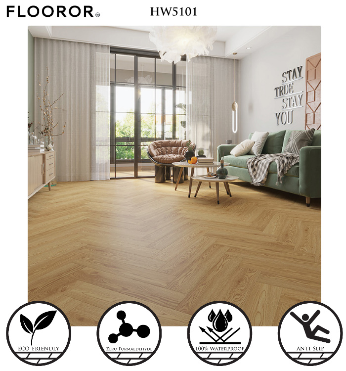 FLOOROR人字木石塑地板 HW5101 (訂購單位: 26塊/盒) - 每盒覆蓋23平方尺