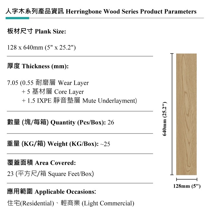 SPC 石塑地板 人字木 (Herringbone Wood) HW5 系列 - 厚7.05mm