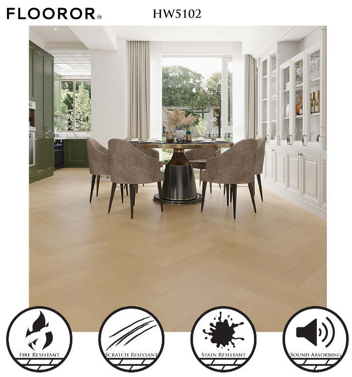 FLOOROR人字木石塑地板 HW5102 (訂購單位: 26塊/盒) - 每盒覆蓋23平方尺