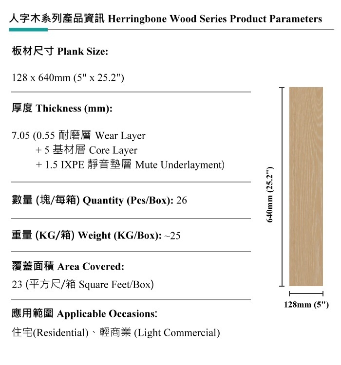 SPC 石塑地板 人字木 (Herringbone Wood) HW5 系列 - 厚7.05mm